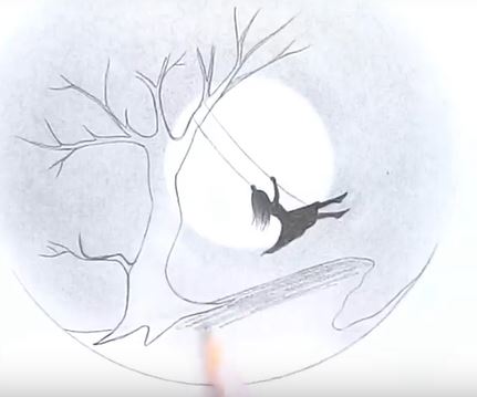A girl swinging in a tree Drawing with pencil || Scenery drawing easy for Beginners