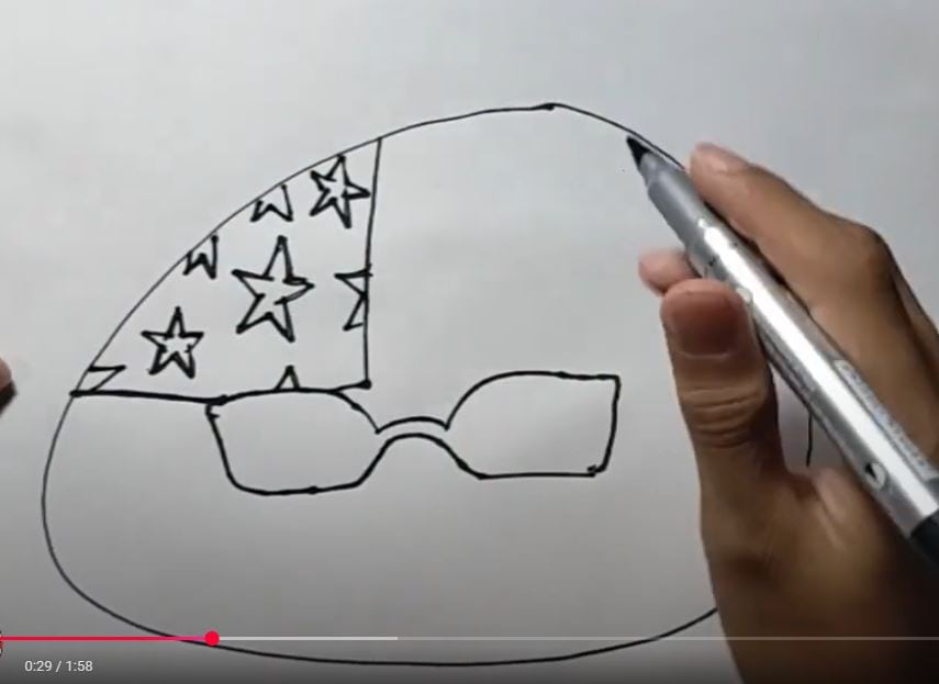 This image shows a step-by-step guide to drawing a creative and fun design, including stars and sunglasses inside a circular shape, perfect for learning how to draw step by step.