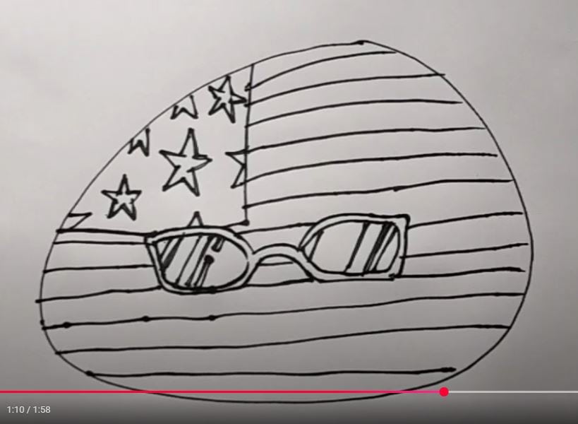 This illustration shows how to draw a stylized American flag with stars, stripes, and sunglasses, showcasing a fun and creative approach to drawing patriotic symbols.