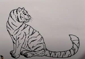 The back of the tiger in a sitting position should simply be a curve from the neck down below, it has some lines for the fur, it is not completely smooth as shown in the illustration.
