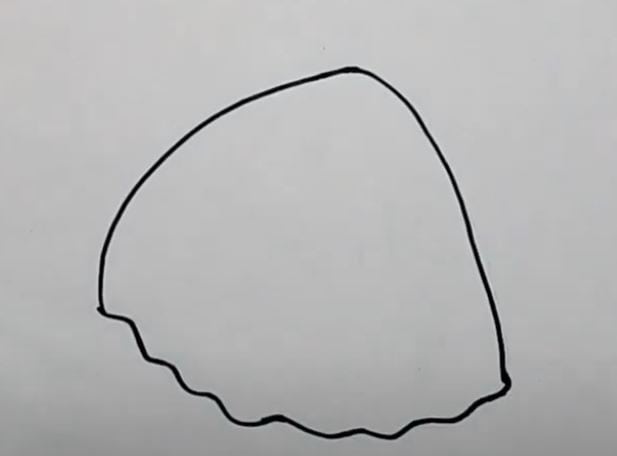 This image illustrates the first step in a detailed, step-by-step guide on how to draw rocks or landforms, focusing on shaping the outline with simple line art for beginners.