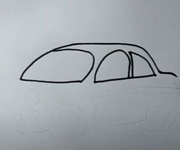 This image demonstrates a simple step-by-step guide on how to draw a basic car, focusing on outlining the main vehicle shapes and structure, perfect for art learners and beginners wanting to learn car drawing techniques.