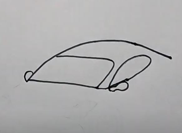 Sketch of a simple car drawing with step-by-step illustration for beginners on how to draw a vehicle.