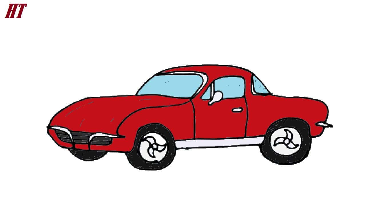 A red vintage car illustration, perfect for step-by-step drawing tutorials, showcasing how to draw cars with simple lines and colors. Ideal for beginners learning how to draw vehicles.