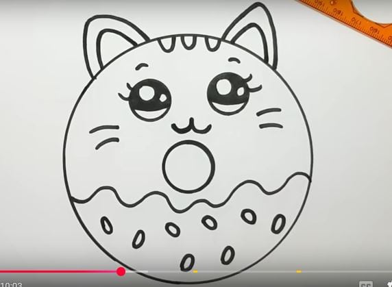 This image shows a step-by-step drawing process of a charming cartoon cat with playful details, suitable for artists and beginners learning how to create cute animal illustrations.