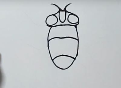 This image shows a step-by-step tutorial on how to draw a cute bee sketch, starting with rough outlines and basic shapes to create an easy insect drawing for artists of all levels.