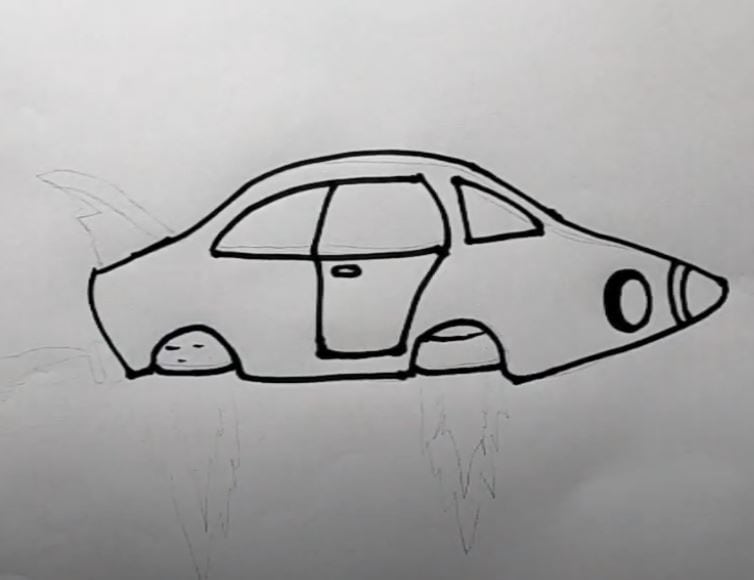 This image showcases a basic line drawing of a car, illustrating the initial sketching process for those learning how to draw vehicles step by step, emphasizing proportions and shapes.