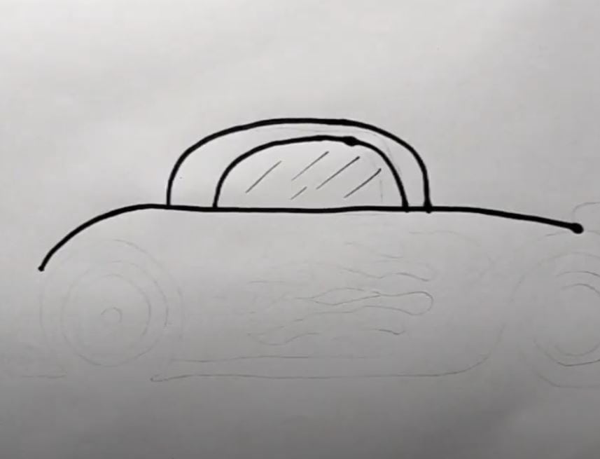 This image shows the initial outline of a car with simple lines and shapes, illustrating the first steps in drawing a vehicle from scratch, suitable for art learners and beginners.