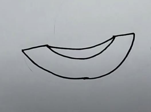 This image shows the initial outlines of a banana being drawn step-by-step, illustrating the basic shapes and contours used in creating a realistic banana sketch.