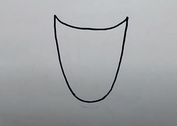 A simple step-by-step drawing process showing the initial outline of a cartoon or character face.