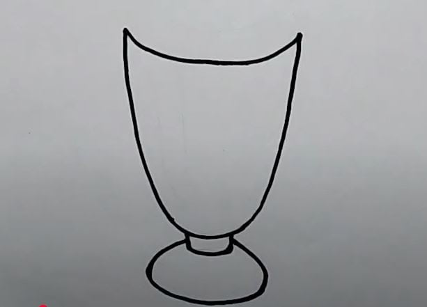 This image shows an outline of a wine glass in early drawing stages, with simple black lines on a white background. It demonstrates the fundamental shapes and proportions involved in sketching a wine glass as part of a step-by-step drawing tutorial.