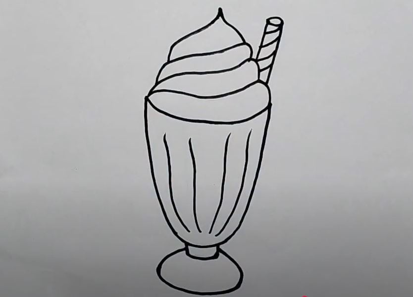 This image showcases a simple, hand-drawn illustration of a milkshake or ice cream float in a tall glass with a straw and whipped cream on top, ideal for learning drawing techniques.