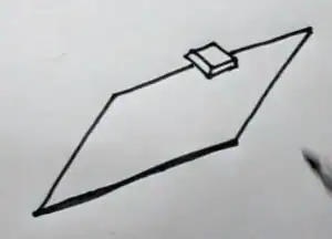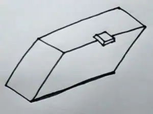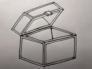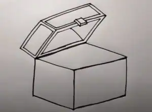 Above the base, draw the top of the chest facing upwards as if it were open, similar to the illustration.