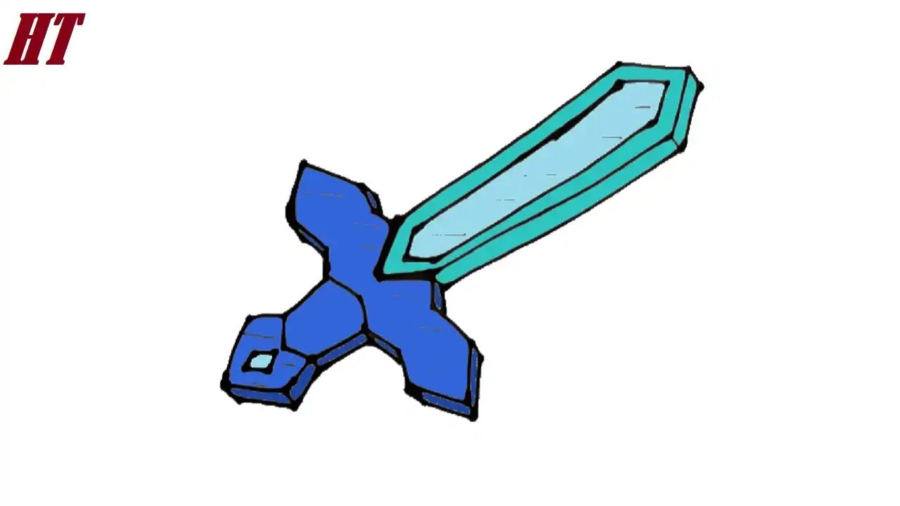 This image showcases a simplified, colorful cartoon sword with a blue handle and a light blue blade, illustrating each stage of the drawing process for beginners following a step-by-step tutorial.
