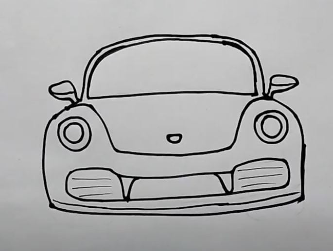 This image demonstrates the initial outline for drawing a basic car, perfect for those interested in learning how to draw cars with simple lines and shapes.