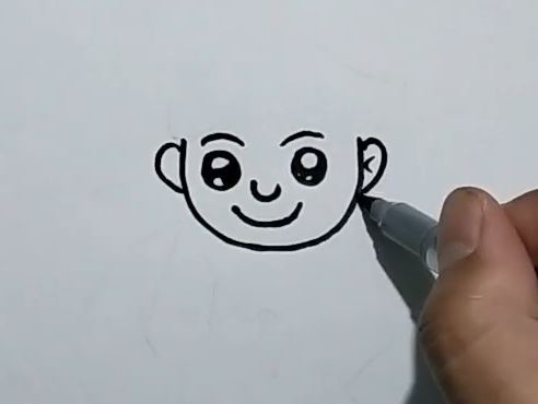This image showcases the process of sketching a cute cartoon face for art beginners, perfect for learning how to draw adorable characters. Relevance for drawing tutorials.