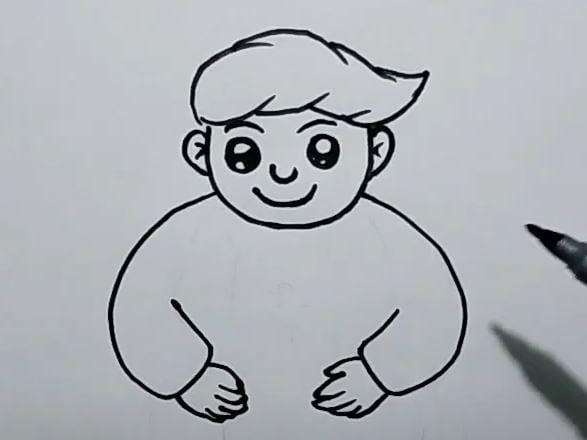 This image shows the initial sketch of a cartoon boy for drawing practice, perfect for artists and kids learning to draw characters.