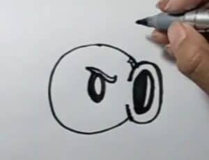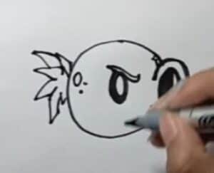 First, draw the Repeater’s eyes from Plants vs. Zombies 2 using a circle, shading to create an iris, and adding eyebrows just above the eyes to give it a fierce look to fight the zombies 🙂