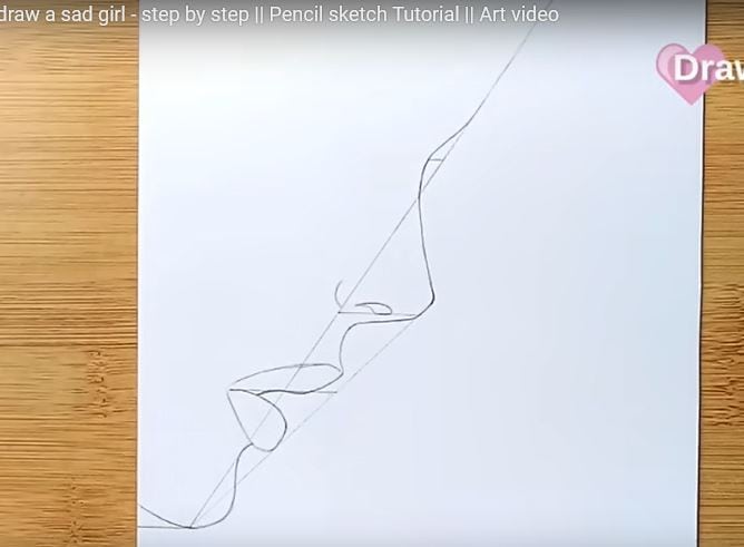This image shows the initial stages of sketching a sad girl’s face with basic pencil lines, ideal for beginners learning art and portrait drawing step by step.