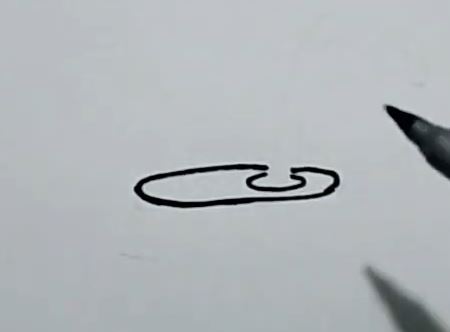 This image captures the process of creating a cartoon eye with a pen on paper, perfect for instructional art tutorials and drawing lessons.