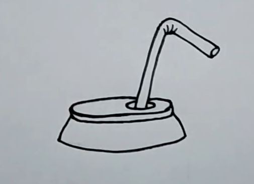 This image shows the initial sketch and outline of an iron, demonstrating the basic shapes and lines necessary for drawing this household appliance.