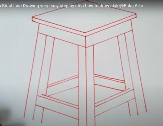 This image shows a basic outline of a stool with red guiding lines, demonstrating how to draw the structure and proportions of a stool in a simple, easy-to-understand style, suitable for artistic beginners and sketching enthusiasts.