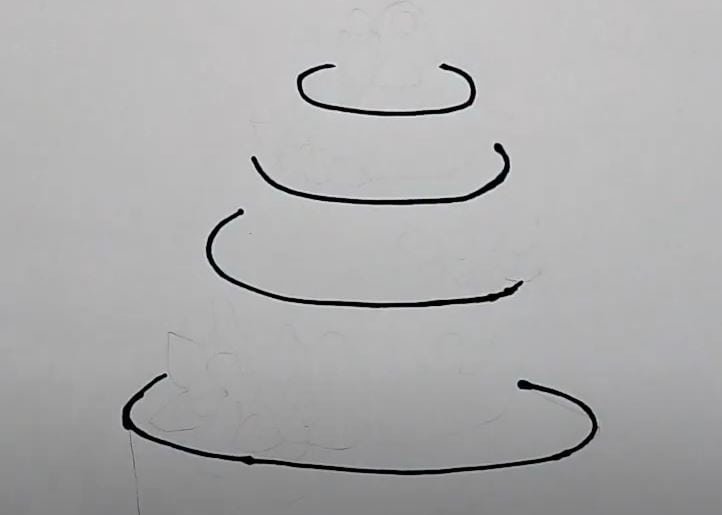 This image shows the initial sketching stage of a step-by-step drawing tutorial, illustrating how to draw a spiral with continuous, flowing lines to develop confident artistic skills.