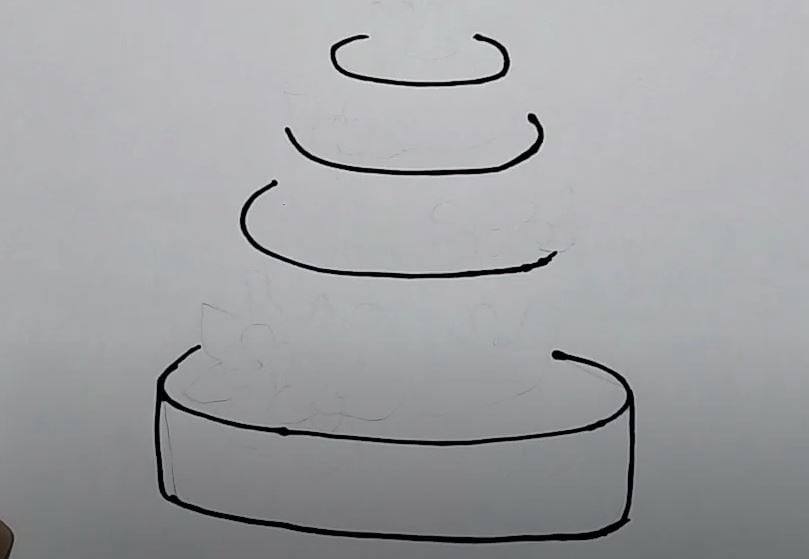 This image illustrates the initial stages of creating a spiral drawing, starting with simple curved lines that gradually build into a three-dimensional shape, ideal for anyone interested in learning how to draw spirals and basic shapes.