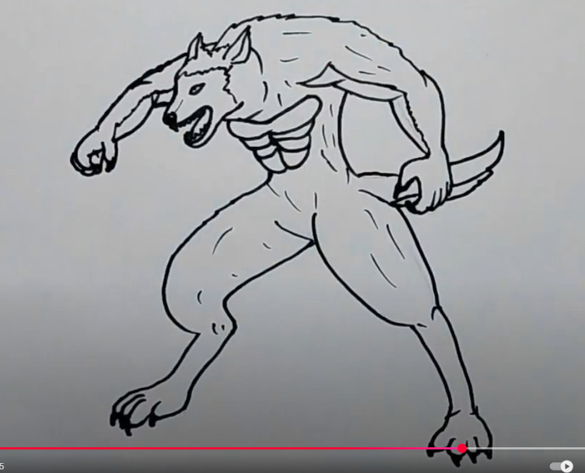 This image showcases a step-by-step drawing guide to creating a detailed and dynamic werewolf monster with sharp claws, muscular build, and fierce expression, ideal for artists and beginners learning to draw monsters and fantasy creatures.