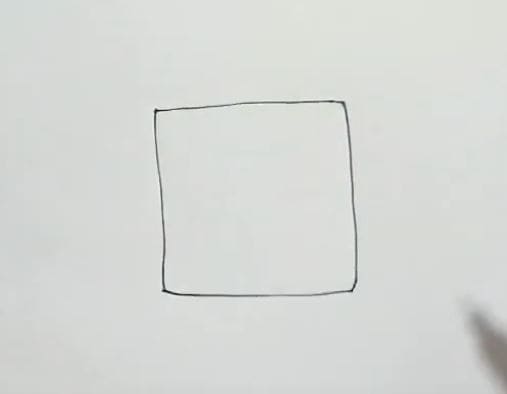 A minimalistic drawing of a square with clean lines on white paper, serving as the initial step in a comprehensive step-by-step drawing guide.