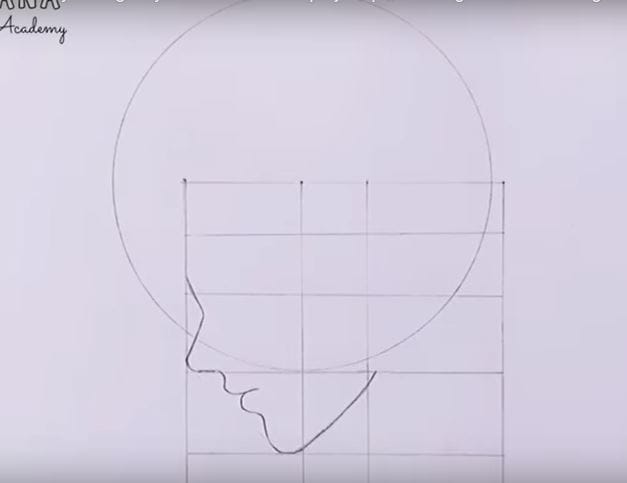 This image shows the initial sketching process for drawing a human face in profile, including basic guidelines, facial contours, and proportions, ideal for beginners learning how to draw portraits.