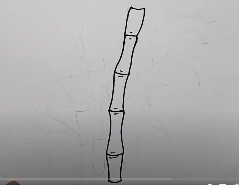 This image shows the initial stages of drawing a bamboo stalk, highlighting the basic shapes and segments needed. The process is ideal for beginners interested in learning how to draw plants or nature scenes using simple step-by-step instructions for accurate and realistic bamboo illustration.