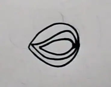 This image shows the initial sketch of a leaf, demonstrating the step-by-step process involved in drawing a realistic leaf, including outlining and shaping elements suitable for educational tutorials and art projects.