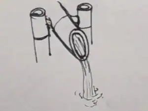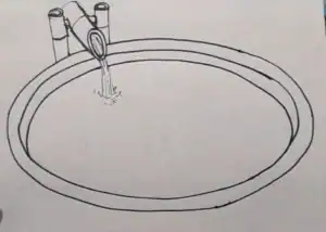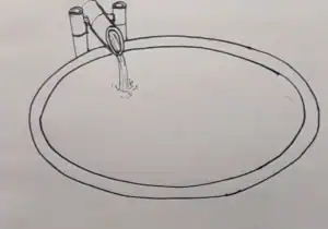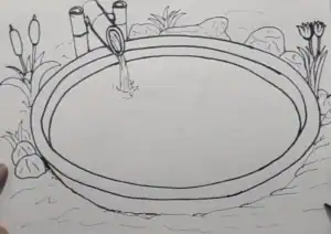 Here, the fish pond is built of concrete in a circular shape. We draw two ovals, one larger and one smaller, to represent the thickness of the pond’s rim.