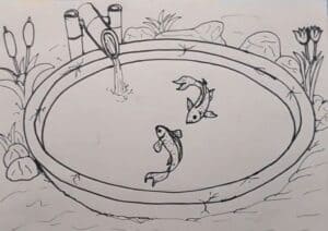 Fish in Pond Drawing step by step
