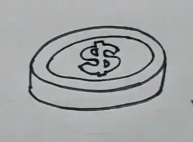 This image shows a simple, black-and-white line drawing of a dollar coin, featuring a circular shape with a dollar sign ($) in the center. It serves as a visual guide for step-by-step drawing tutorials on creating money illustrations, helping aspiring artists learn to sketch financial symbols easily.