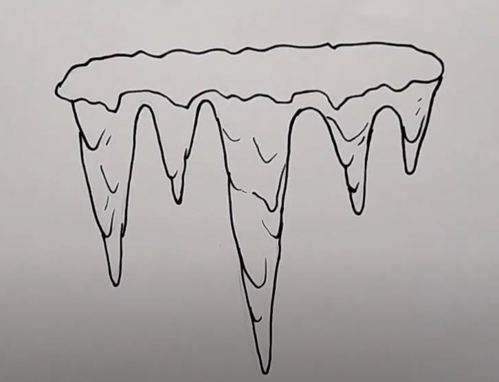 This image shows a step-by-step process to draw icicles, illustrating the basic shapes and outlines needed to create realistic winter ice formations, ideal for art enthusiasts and learners exploring drawing techniques.