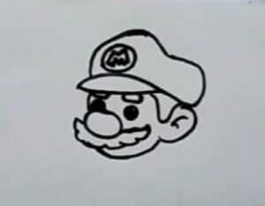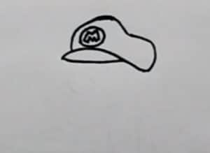 First draw Mario’s hat, creating his signature hat shape. Now, draw a circle with an “M” in the middle.