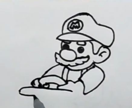 This image shows a simple black-and-white line drawing of Super Mario, demonstrating the step-by-step process for beginners to learn how to draw a popular video game character. It serves as an easy guide for aspiring artists interested in cartoon drawing techniques.