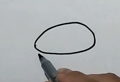 This image demonstrates the initial step in drawing an oval using a black marker on white paper, ideal for art tutorials and beginner drawing lessons.
