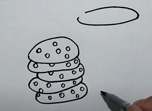 This image showcases a basic tutorial for drawing a fun, stylized dog stack composed of multiple cartoon dogs with distinct features, demonstrating easy sketching techniques.