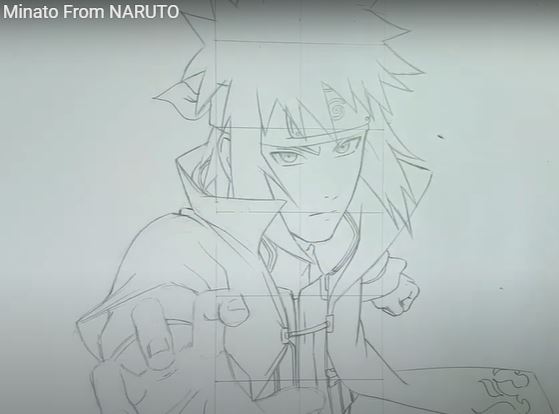 This image features a line drawing tutorial of Naruto from Naruto, illustrating the step-by-step process to create a detailed anime character sketch, suitable for art learners.
