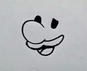 This image shows a basic, black-and-white outline of Mickey Mouse’s face, illustrating the initial sketching phase in a drawing tutorial. The sketch highlights key features like the head shape, ears, eyes, nose, and mouth, guiding artists through creating a recognizable Disney character using simple lines. Perfect for those learning how to draw cartoon characters from scratch.