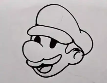 This image illustrates a step-by-step process to draw Super Mario’s face, focusing on beginner cartoon drawing techniques, perfect for art learners wishing to master this popular video game character.