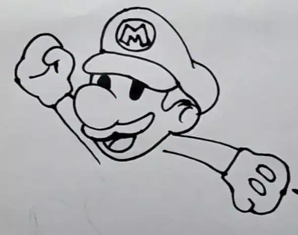 A detailed step-by-step guide on drawing Super Mario, highlighting key features like his cap, facial expression, and gloves, suitable for artists learning character drawing.