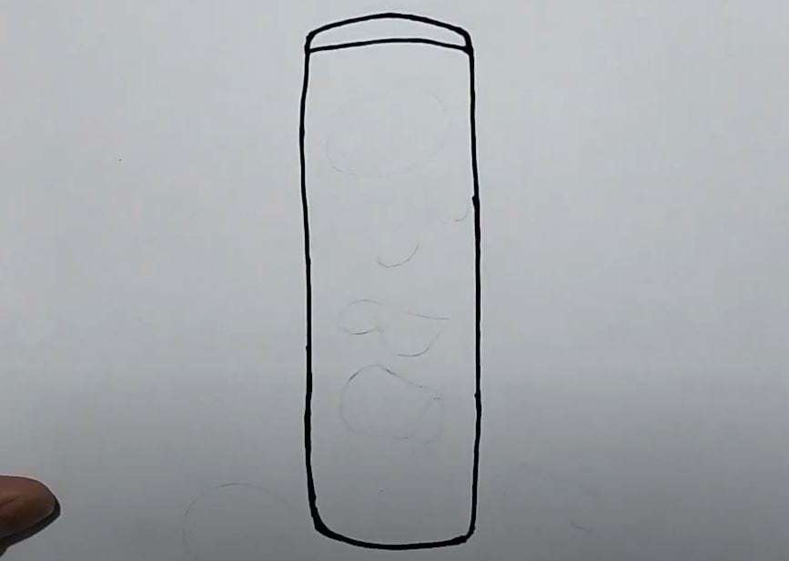 This image demonstrates the initial stages of drawing a tall cylindrical object with simple black outlines, along with faint guideline sketches, perfect for learning how to draw step-by-step.