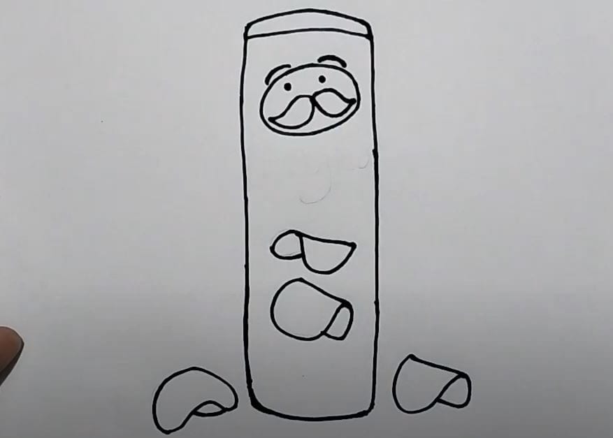 This image showcases an easy tutorial for drawing a fun, cartoon-style soda can, focusing on basic shapes and outlines. It features a tall can with a smiling face, a straw, and soda bubbles, ideal for artists or kids learning to draw beverage cans in a step-by-step process.