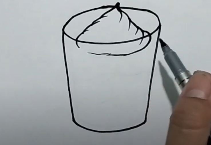 A line drawing tutorial showing how to draw a cylindrical object with step-by-step instructions for beginners.