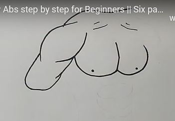 This image demonstrates the initial stages of sketching a muscular male torso, highlighting key steps for beginners to learn how to draw human anatomy with clear line work and proper proportions.