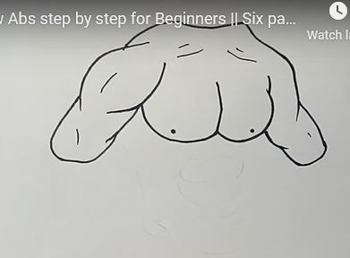This instructional image demonstrates how to draw a muscular male torso, highlighting key steps to sketch and refine the body shape and muscles for beginners looking to improve their drawing skills.